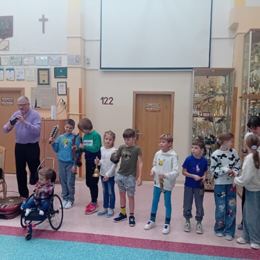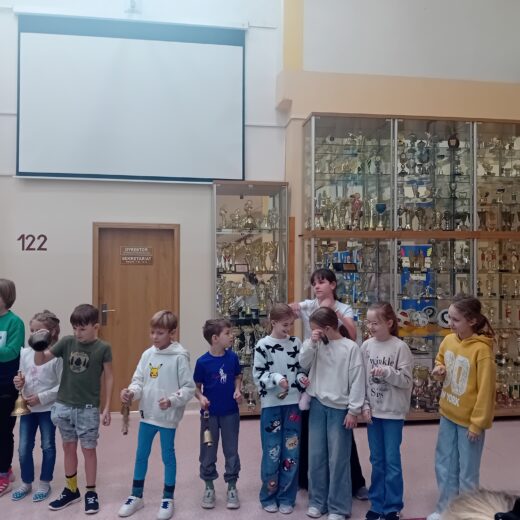 W dniu 26 listopada 2025 r. w naszej szkole odbył się koncert pt. ,,Dzwony, dzwonki i dzwoneczki…”. Był to pierwszy z cyklu koncertów ,,W Krainie Pani Muzyki” w wykonaniu muzyków Lubuskiego Biura Koncertowego. Uczniowie mieli okazję wsłuchać się w melodie, przywołujące na myśl dźwięki natury i przyrody oraz zapoznać się z brzmieniem instrumentów takich jak różnego rodzaju dzwonki i dzwony, talerze perkusyjnie, misy tybetańskie, a także wystukiwać podane przez prowadzącego rytmy. Duże wrażenie na dzieciach zrobił występ końcowy zespołu składającego się z uczniów, którzy zagrali na instrumentach razem z zaproszonymi muzykami.