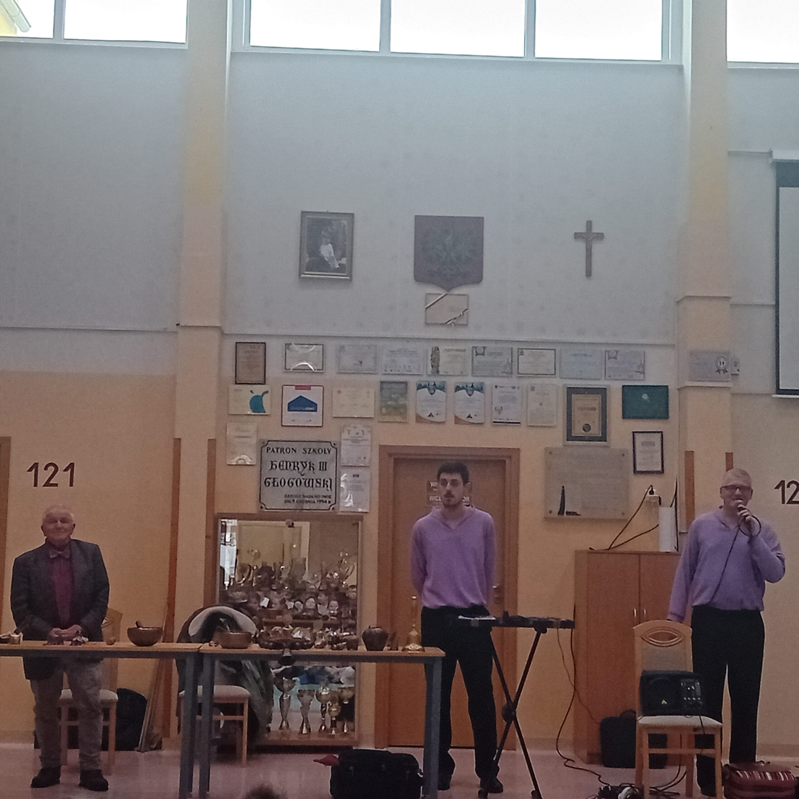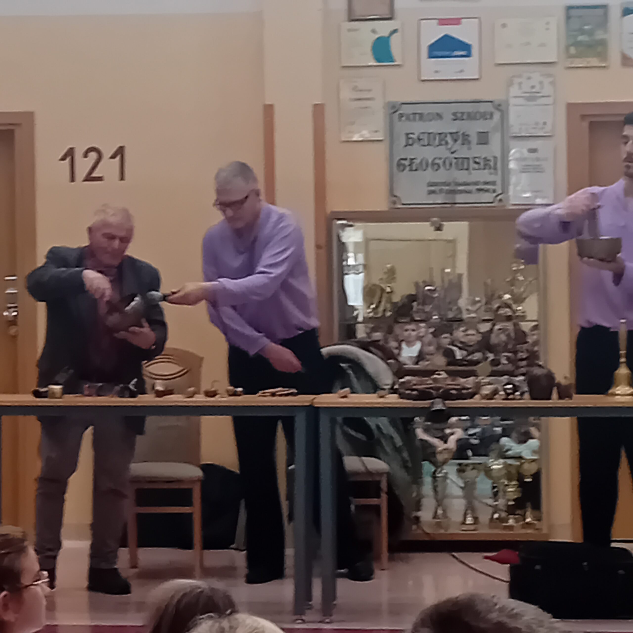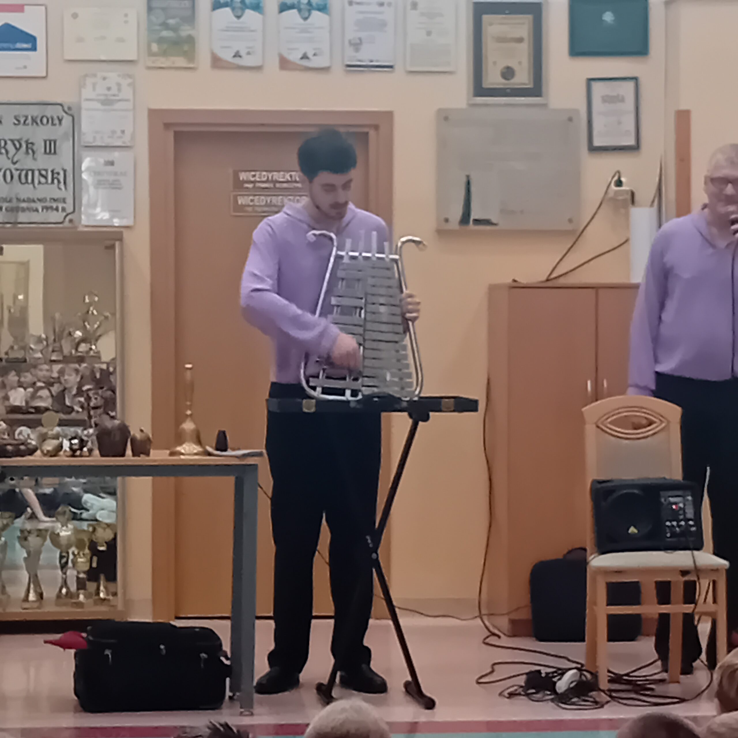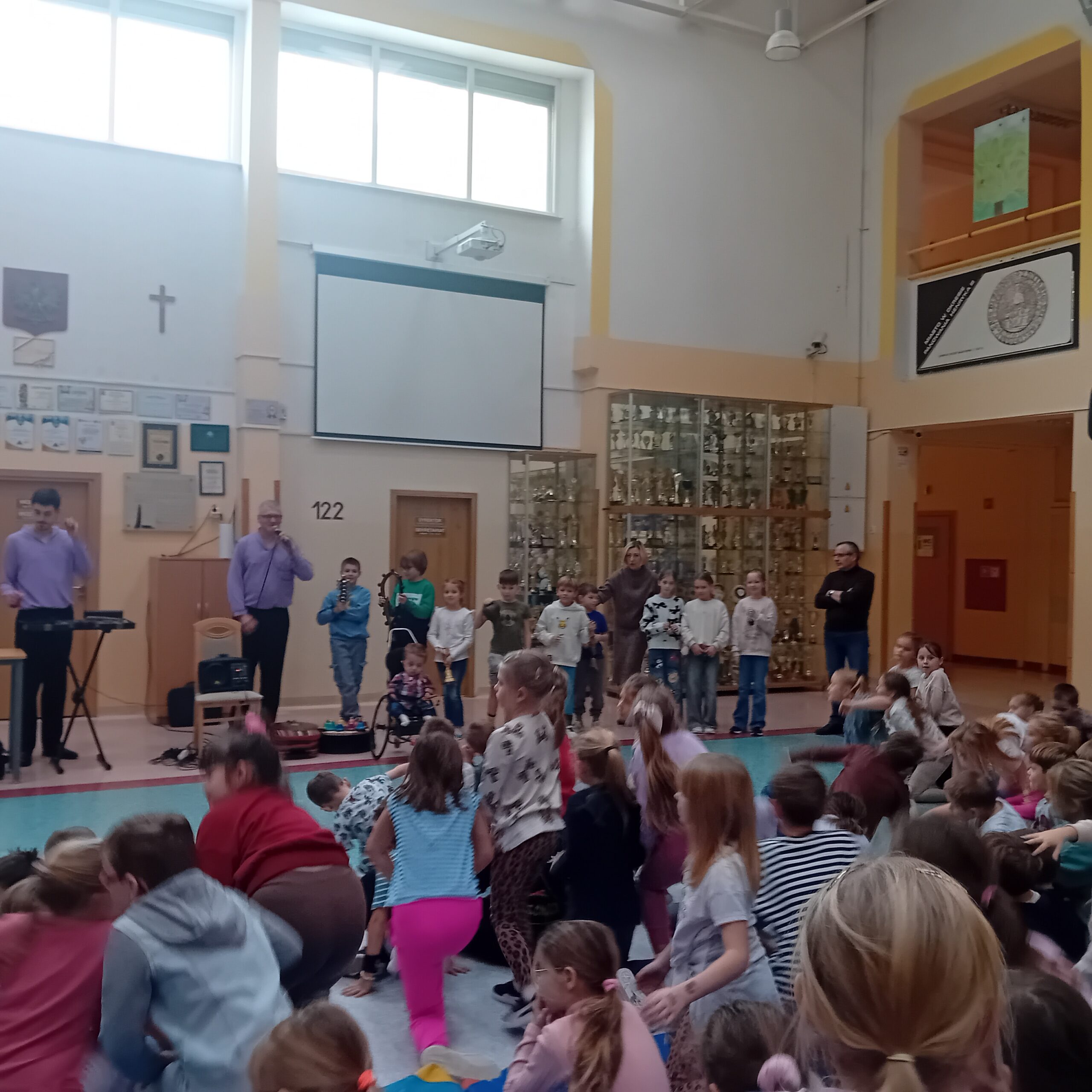 W dniu 26 listopada 2025 r. w naszej szkole odbył się koncert pt. ,,Dzwony, dzwonki i dzwoneczki…”. Był to pierwszy z cyklu koncertów ,,W Krainie Pani Muzyki” w wykonaniu muzyków Lubuskiego Biura Koncertowego. Uczniowie mieli okazję wsłuchać się w melodie, przywołujące na myśl dźwięki natury i przyrody oraz zapoznać się z brzmieniem instrumentów takich jak różnego rodzaju dzwonki i dzwony, talerze perkusyjnie, misy tybetańskie, a także wystukiwać podane przez prowadzącego rytmy. Duże wrażenie na dzieciach zrobił występ końcowy zespołu składającego się z uczniów, którzy zagrali na instrumentach razem z zaproszonymi muzykami.