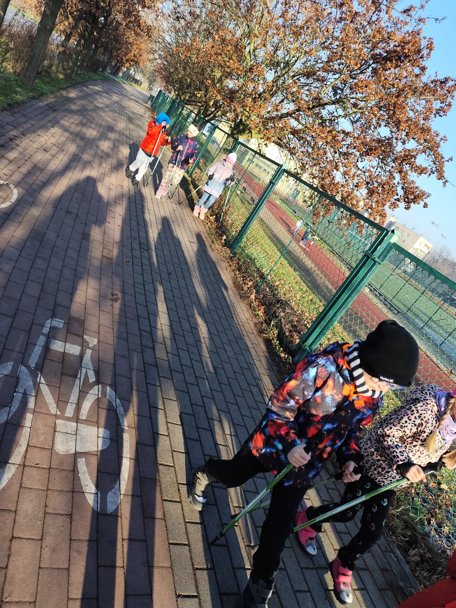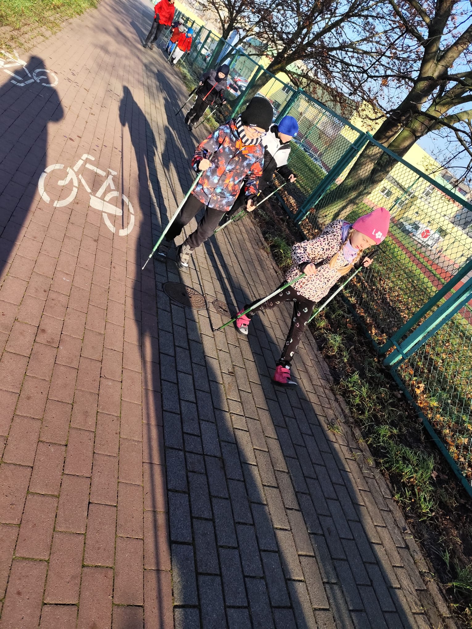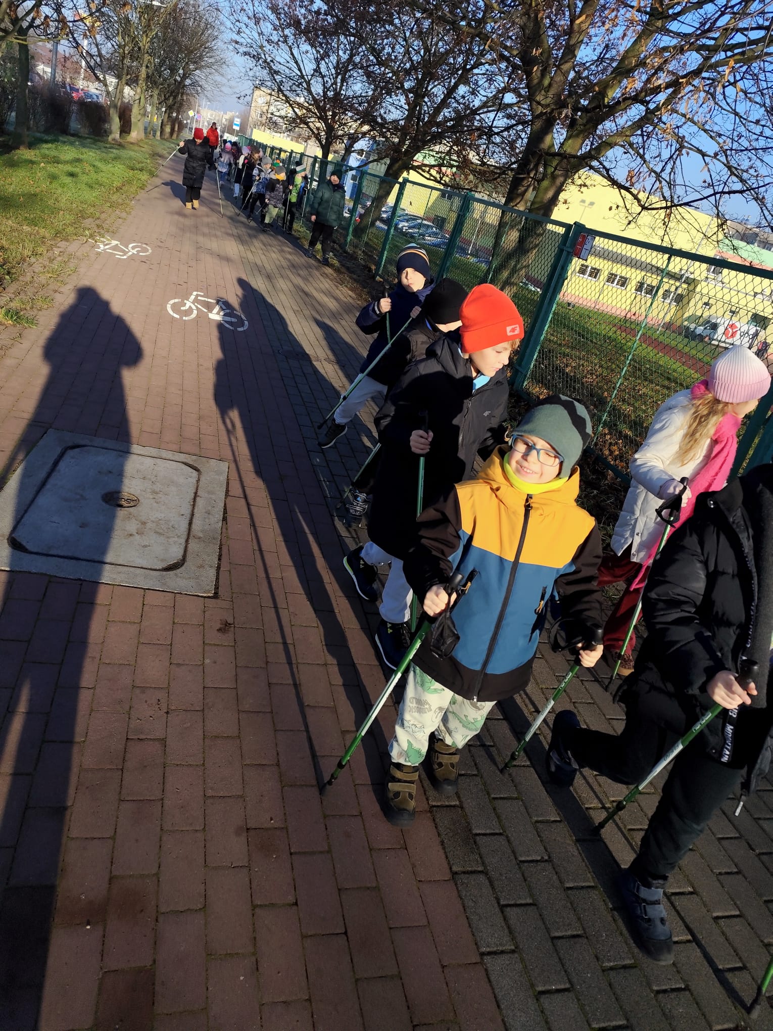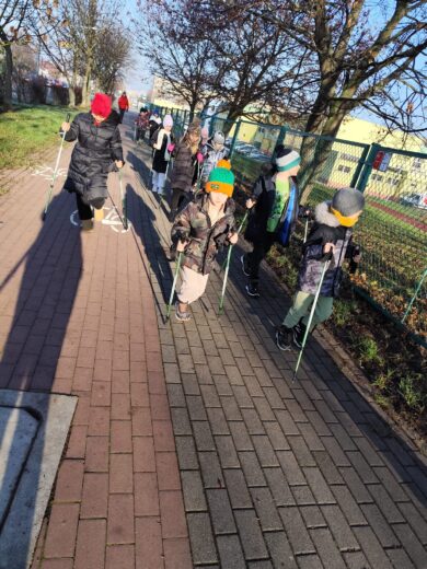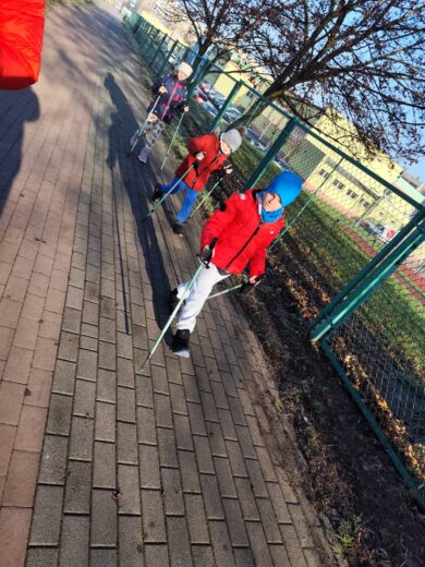 Dnia 3.12.2025 r. na lekcji wychowania fizycznego w klasie 1A odbyły się zajęcia z nordic walking, czyli formy rekreacji polegającej na marszach ze specjalnymi kijami. Jakie pozytywne efekty może przynieść Nordic Walking? Okazuje się, że Nordic Walking w pozytywny sposób wpływa na całe ciało. Chodzenie z kijkami aktywuje aż 90% mięśni w naszym ciele, podczas gdy zwykły spacer wprawia w ruch zaledwie 40-50%.