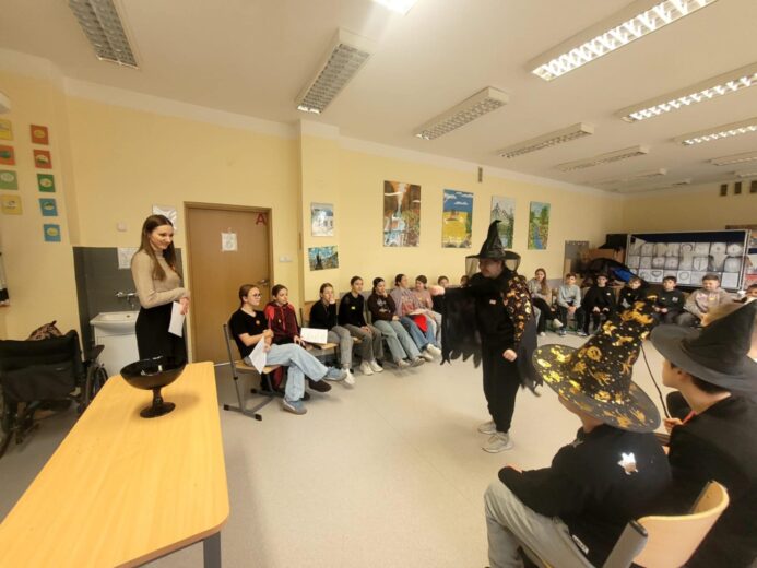 Dnia 25 listopada klasa 5b gościła w naszej szkole zaprzyjaźnionych uczniów z Zespołu Placówek Szkolno – Wychowawczych. Celem spotkania była andrzejkowa integracja. Jak się okazało, wszystkim uczestnikom zabawy wywróżono wspaniałą przyszłość. Po zabawach oraz wróżbach był również czas na poczęstunek. Spotkanie było jednym z działań realizowanych w szkolnego ramach programu “Jesteśmy tacy sami”.