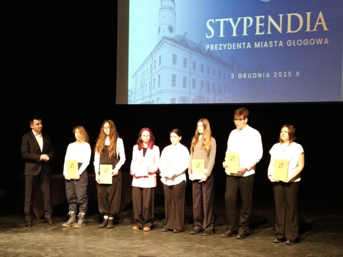 Z radością informujemy, że 3 GRUDNIA 2025 r. w Teatrze im. im. Andreasa Gryphiusa odbyła się uroczysta gala wręczenia stypendiów naukowych przyznanych przez Prezydenta Miasta za osiągnięcia naukowe w II półrocze roku szkolnego 2024/25. W gronie wyróżnionych znaleźli się uczniowie naszej szkoły: Zuzanna Hałkiewicz, Maria Gajewska, Ewa Gruszka, Apolonia Bińkowska, Hanna Kubacka, Iga Stelmach, Barbara Walkowiak, Michał Kaczmarek, Anastazja Papuga, Alan Kuczera, Emilia Więcek, Aleksandra Szumska, Marcin Zaorski, Jan Pajkowski, Szymon Komperda, Tymoteusz Walkowiak i Jakub Kantarowski. Dzięki swojej ciężkiej pracy, wybitnym osiągnięciom edukacyjnym i zaangażowaniu w życie szkolne zostali uhonorowani tym prestiżowym wyróżnieniem. Serdecznie gratulujemy naszym stypendystom i życzymy im dalszych sukcesów w nauce, realizacji pasji oraz nieustającej motywacji do zdobywania wiedzy!