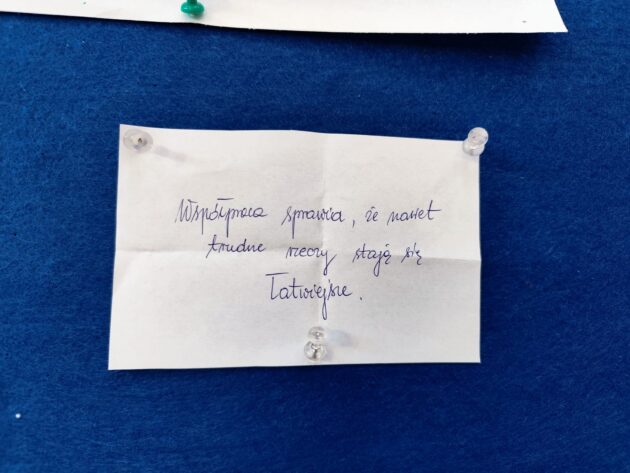 Stworzyliśmy przestrzeń, w której dobre słowo ma swoje miejsce — codziennie, bez pośpiechu, między obowiązkami, w rytmie relacji. Celem akcji było wzmocnienie kultury języka wśród dorosłych pracowników szkoły — poprzez dzielenie się refleksjami, cytatami, komunikatami, które budują relacje i wzmacniają atmosferę współpracy.