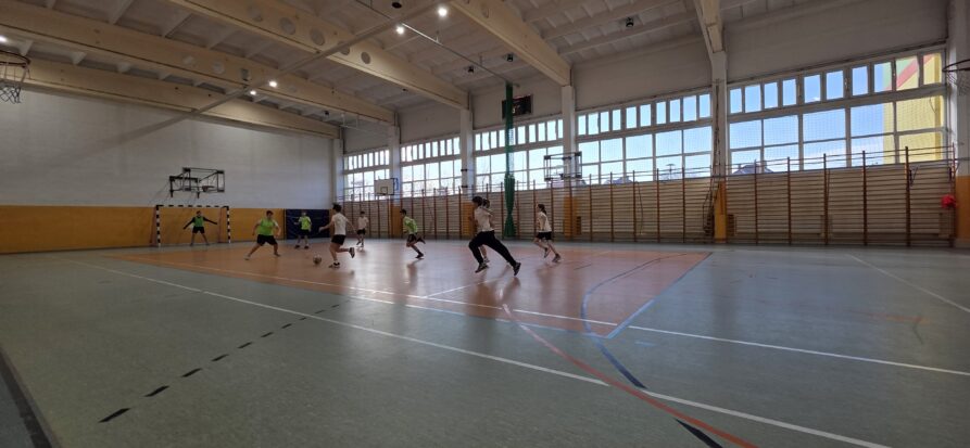 W dniu 11.12.2025 r. w naszej szkole rozegraliśmy Szkolny Turniej Piłki Nożnej Halowej. W fazie grupowej zawalczyły następujące klasy: 8a, 7b i 7c w 1. grupie oraz 7a, 8b a także 8c w 2. grupie. Przeprowadzonych zostało sześć 15-minutowych meczy: 8a -7b, 7a – 8b, 7b – 7c, 8b – 8c, 8a – 7c oraz 8c – 7a. Po emocjonujących rozgrywkach i podliczeniu punktów okazało się, iż do finału, który odbędzie się 8 stycznia 2026 r. przechodzą 4 drużyny, a są to klasy: 7a, 7c, 8a oraz 8b.
